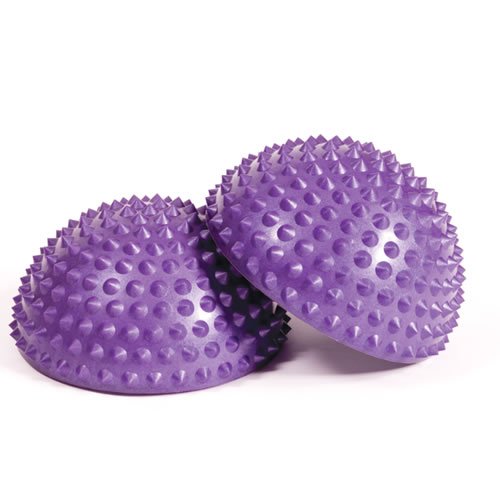 Great for balance training and motor skill development. Arrange in any position and step from one to another. Use flat side down for moderate balance training, pebble side down for more challenging balance training. Purple, 6 in. diameter, sold individually.